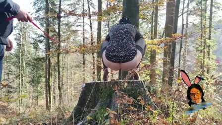 Stockings and high heels mature milf mom pissing outdoor with anus on leash