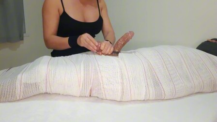Part2 MUMMIFIED Handjob with interruption of cum for two minutes.