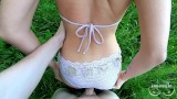Golden shower after sex and blowjob for little slut in the forest