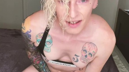 トランス熟女ファックはディルドで自分自身を吸ってファックします