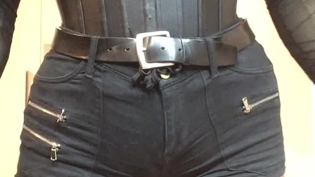 Alex's dildo play (trans, crossdress, fetish, corset, pantyhose, high heels, female mask, leather)